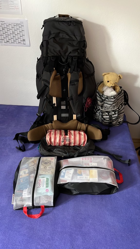 Eine gute Woche vor Abflug stand dann der zweite Packversuch an. Auf einmal hat alles reingepasst – zwar nicht hübsch & bruchfest gepackt, aber Hauptsache drin war mein aktuelles Motto.
