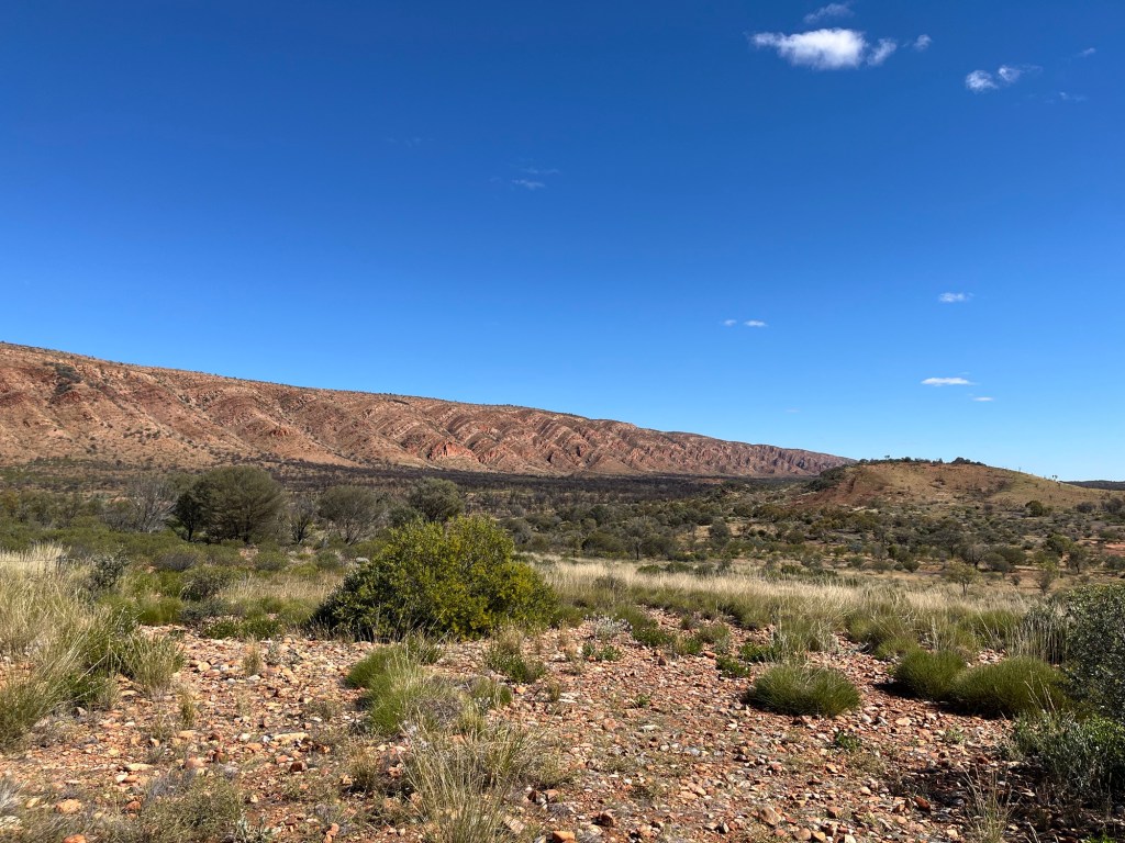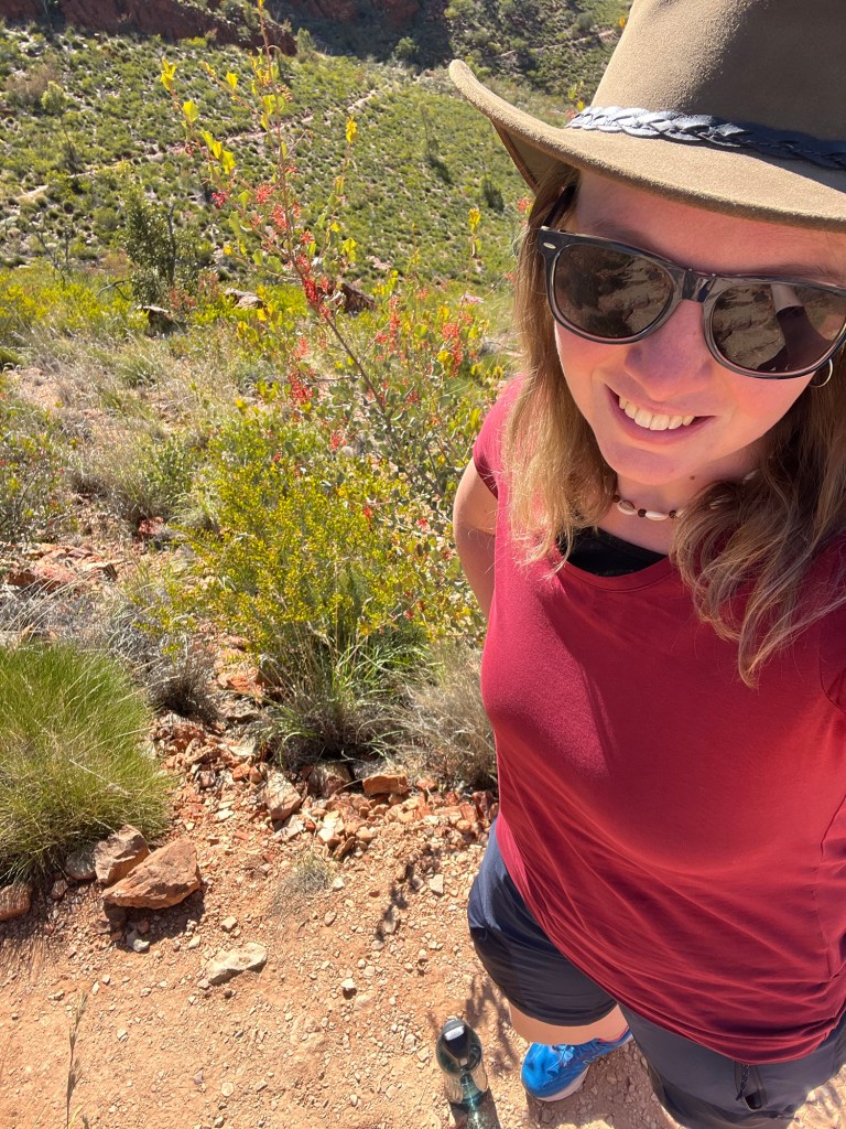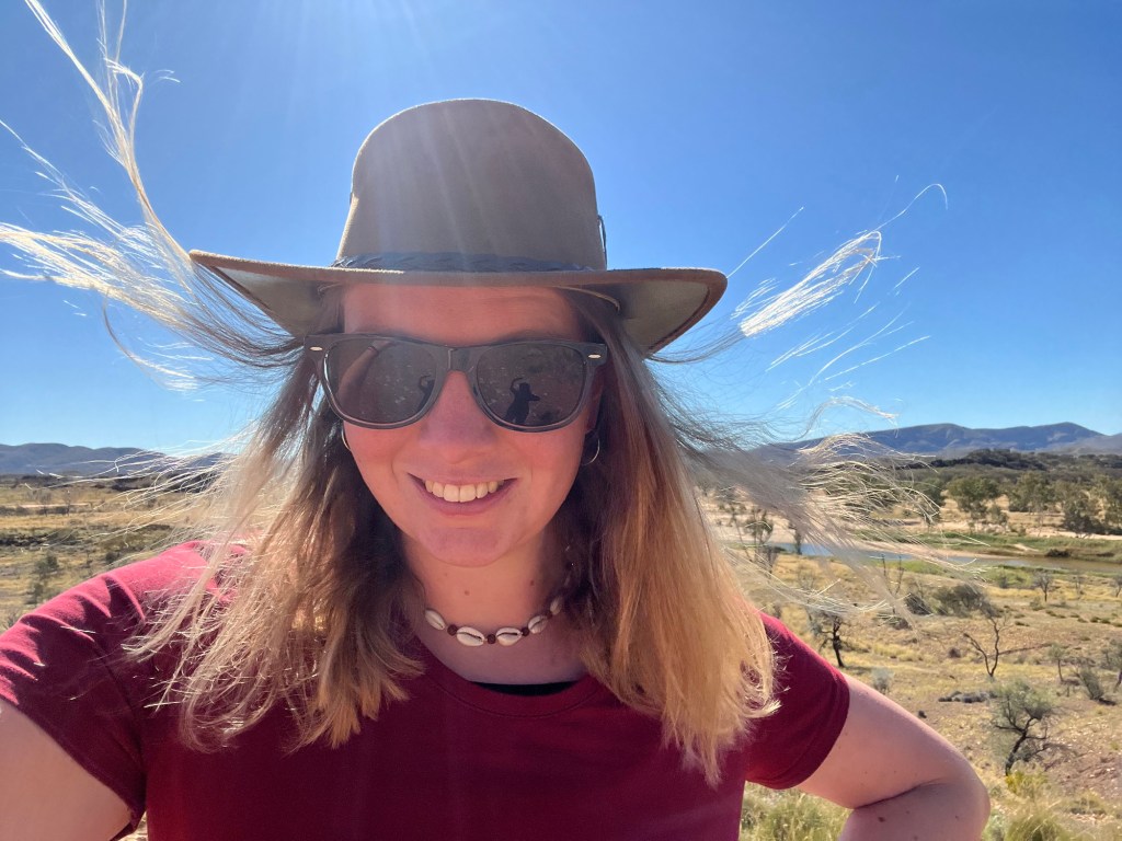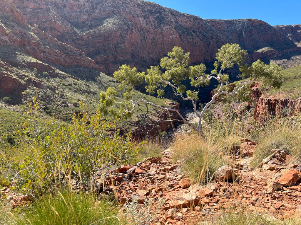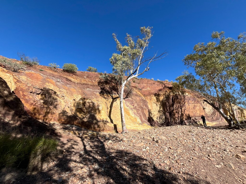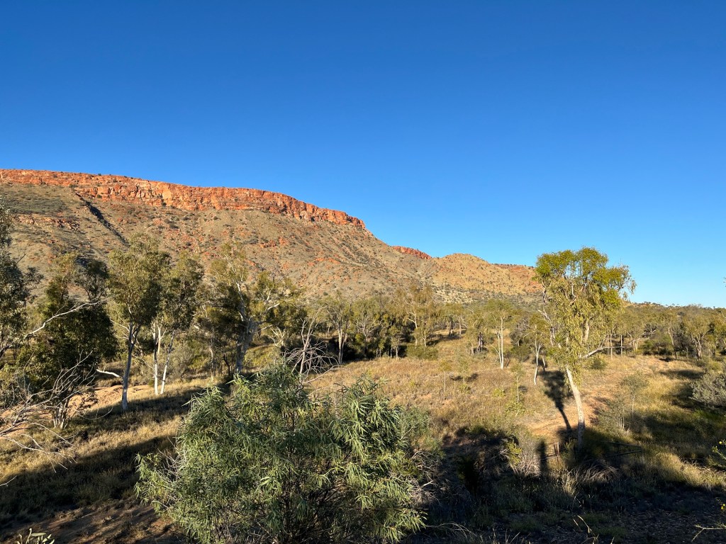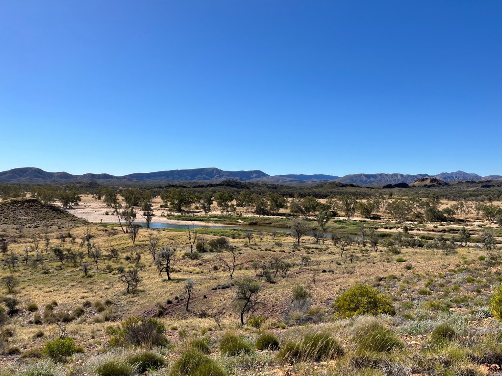 Gegen 14:45 ging es dann weiter zurück Richtung Alice, zunächst zum Ellery Creek Waterhole, das war eine gute 1/2h weit weg. Bei wärmeren Temperaturen wäre das bestimmt mega gewesen zum Schwimmen, so war es uns aber allen etwas zu kühl. Der Ausblick ist aber trotzdem mega, es gibt ganz viele Vögel zum Beobachten und es war ein wirklich schöner Spot.