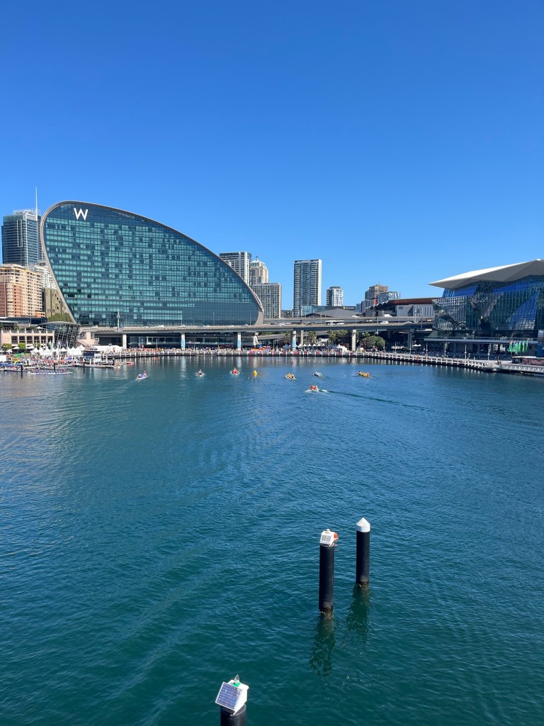 Mit gestärktem Magen geht es weiter zur Town Hall. Zugegeben, die ist nichts besonderes, kann man nun entweder mit der Bahn nach Darling Harbour fahren, oder man läuft die Strecke. Vom Rathaus aus lauft ihr einfach die Druitt Street oder eine der angrenzenden Seitenstraßen entlang bis ihr beim W Hotel Sydney ankommt. Hier erreicht ihr auch Darling Harbour. Zunächst lasst ihr das Hafenbecken rechts liegen und lauft noch kurz durch den Tumbalong Park einmal herum und wendet euch dann wieder zurück in Richtung Wasser. Für Eisliebhaber findet ihr hier auch einen Gelatissimo – eine der größten Eisladen Ketten in Australien.